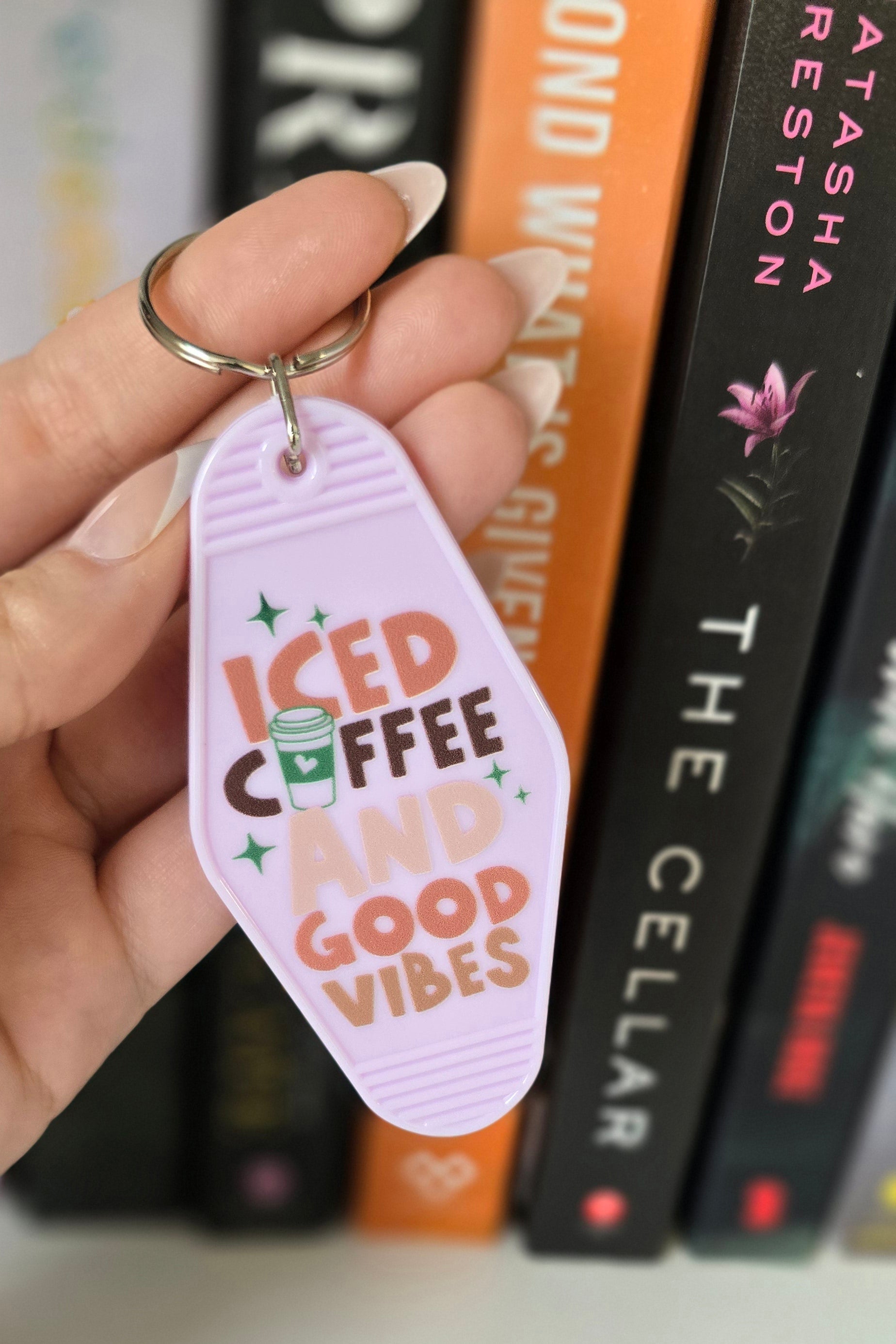 For those who run on iced coffee and positive energy. This vintage-inspired motel keychain features the playful phrase “Iced Coffee & Good Vibes”—a reminder to keep the caffeine flowing and the good vibes alive.