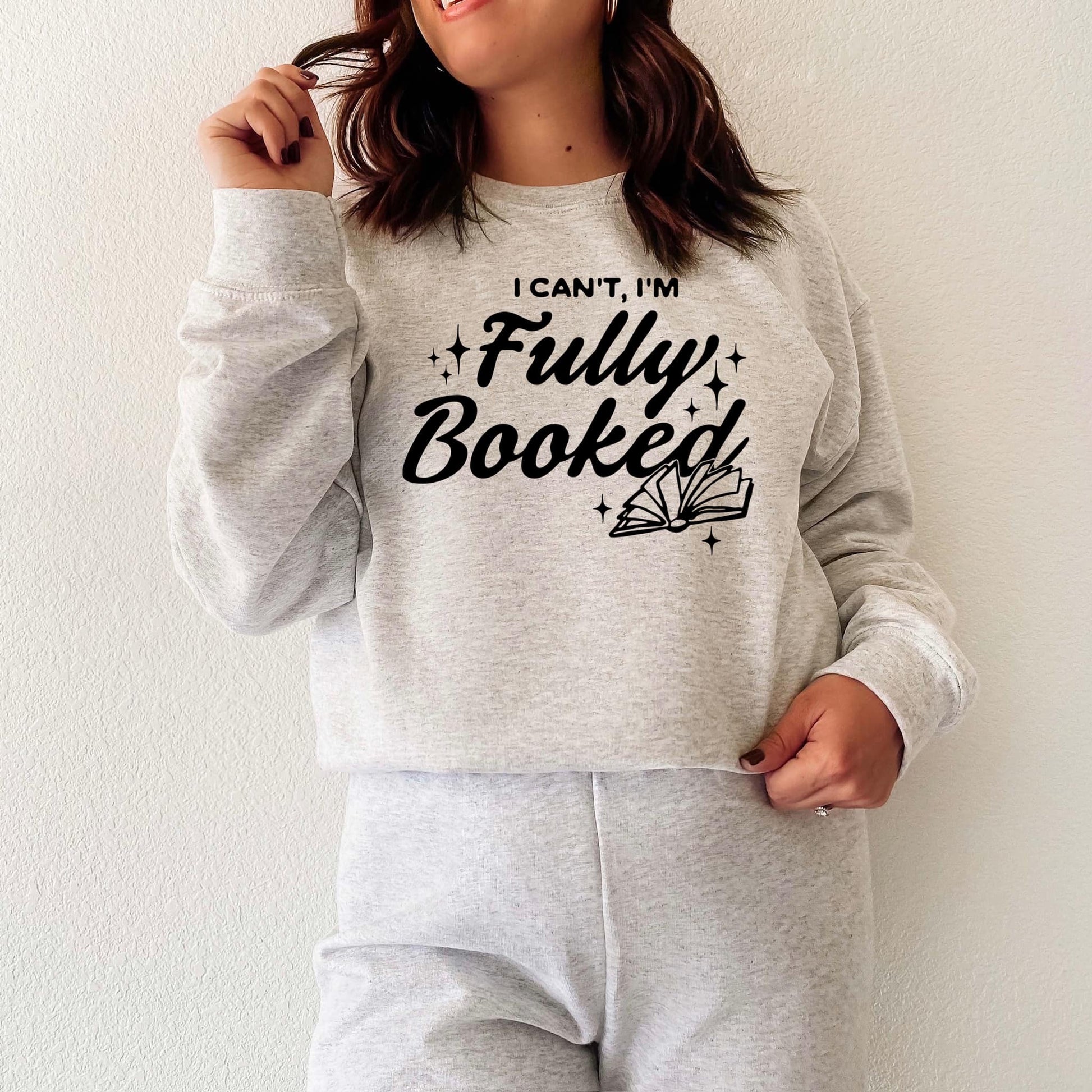 Wrap yourself in warmth and a knowing smile with our "I Can't, I'm Fully Booked" crewneck. Made for those who prioritize the joy of a perfectly stacked TBR (to-be-read) pile or a planner bursting with meaningful commitments, this cozy sweatshirt gets you.
