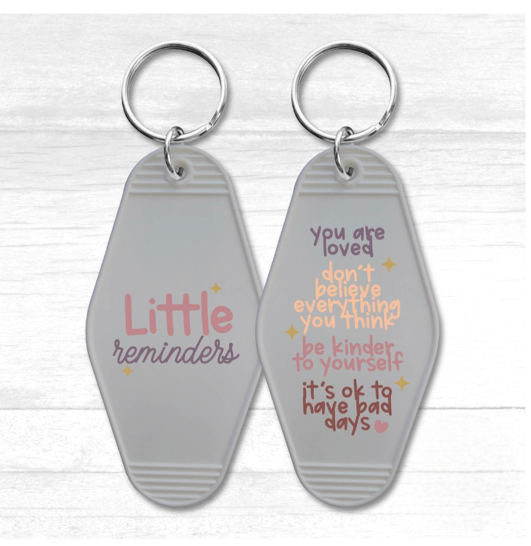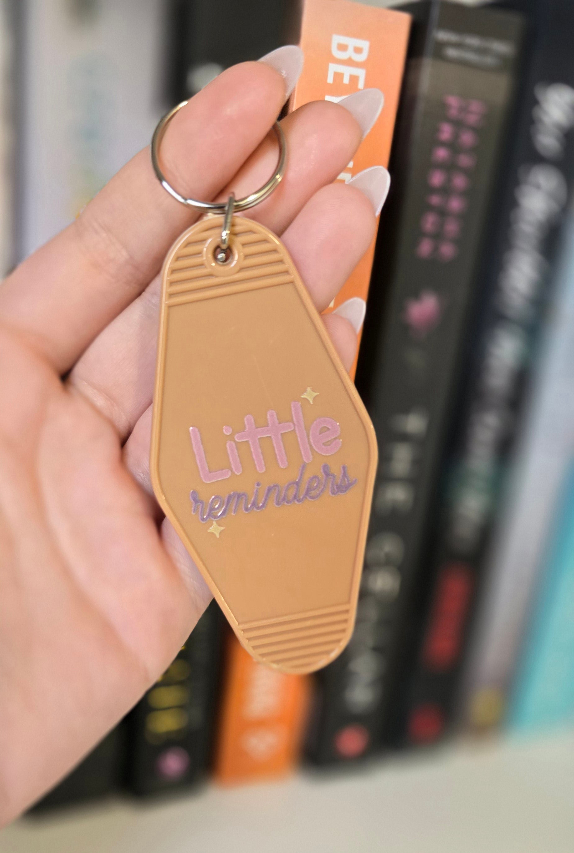 For those who appreciate the small things that keep us grounded. This vintage-inspired motel keychain features the simple phrase “Little Reminders”—a gentle nudge to stay present and keep going.