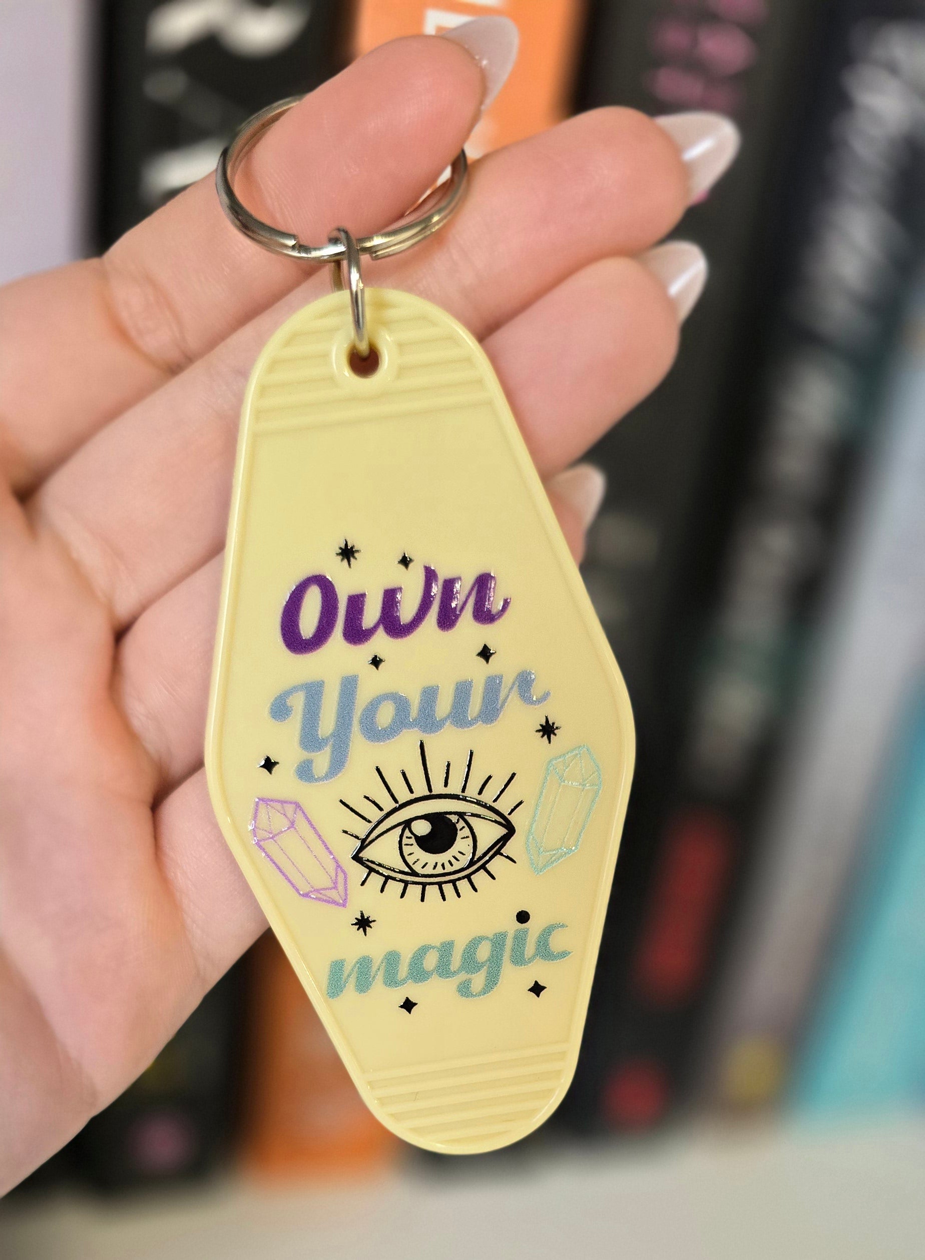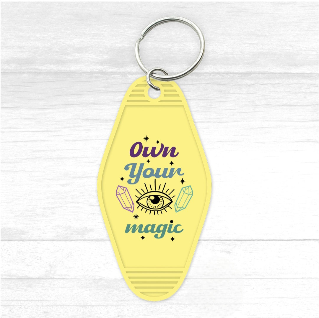 For those who embrace their uniqueness and shine unapologetically. This vintage-inspired motel keychain features the empowering phrase “Own Your Magic”—a reminder to trust your inner strength and let your light shine.
